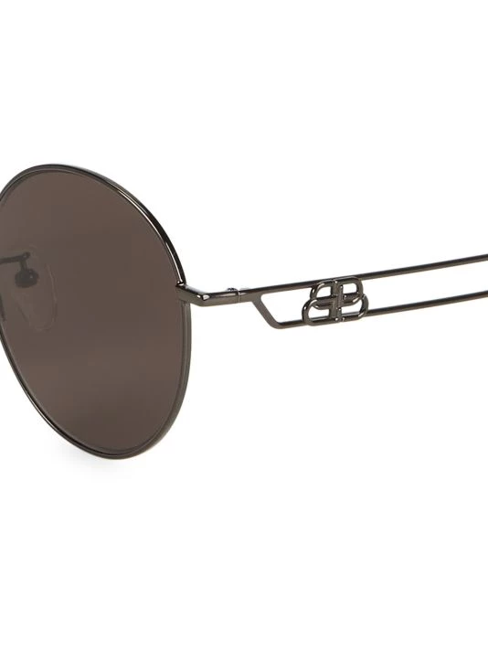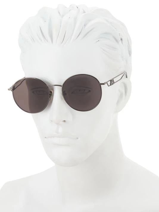Sleek round sunglasses feature eye-catching BB logo at temples.