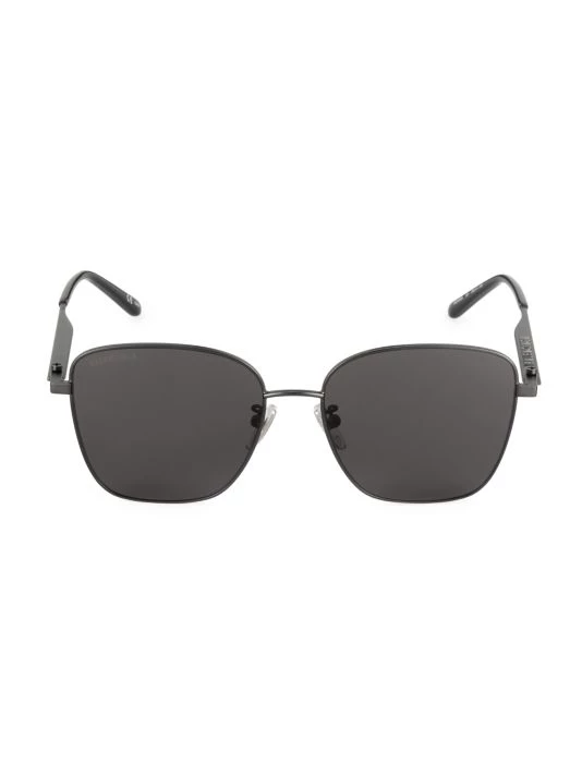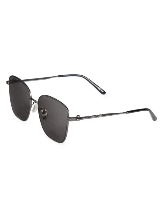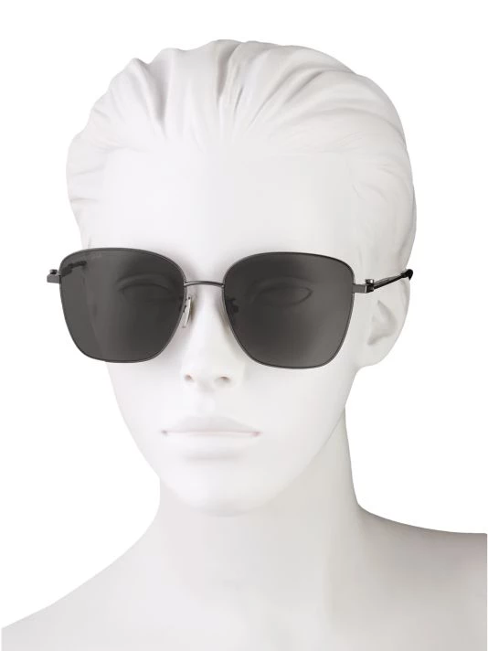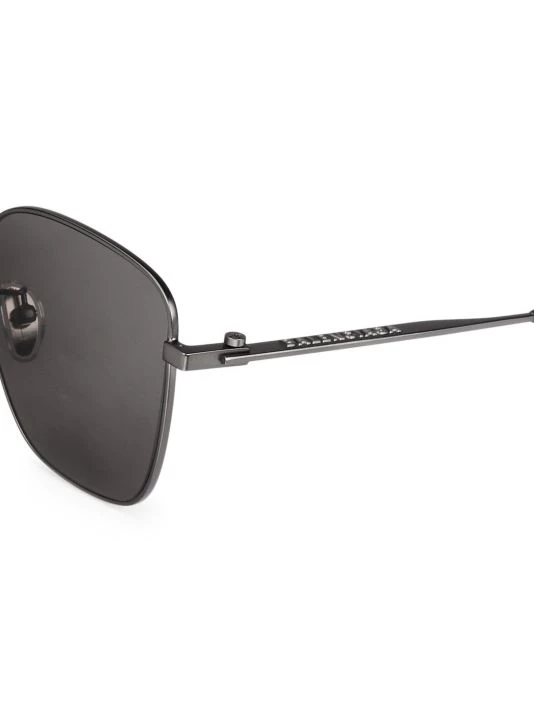Polished square frames define these metal sunglasses, decorated with embossed logo at sleek temples.