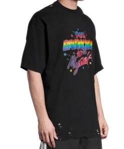 This Balenciaga T-shirt features a graphic on the chest. This garment is complete with a crewneck and short sleeves.