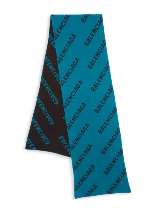 Allover Balenciaga logo defines this reversible scarf, crafted of virgin wool.
