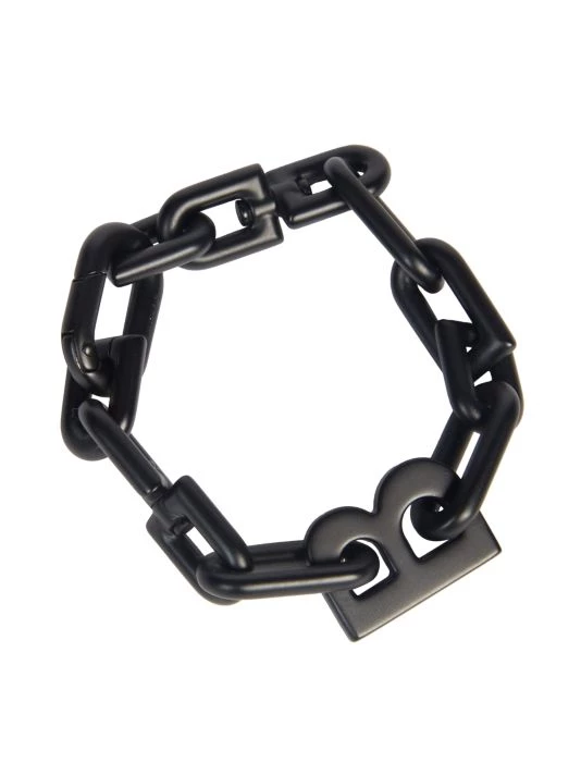 Crafted of black metal, Balenciaga’s chain bracelet is embellished with a “B” charm.