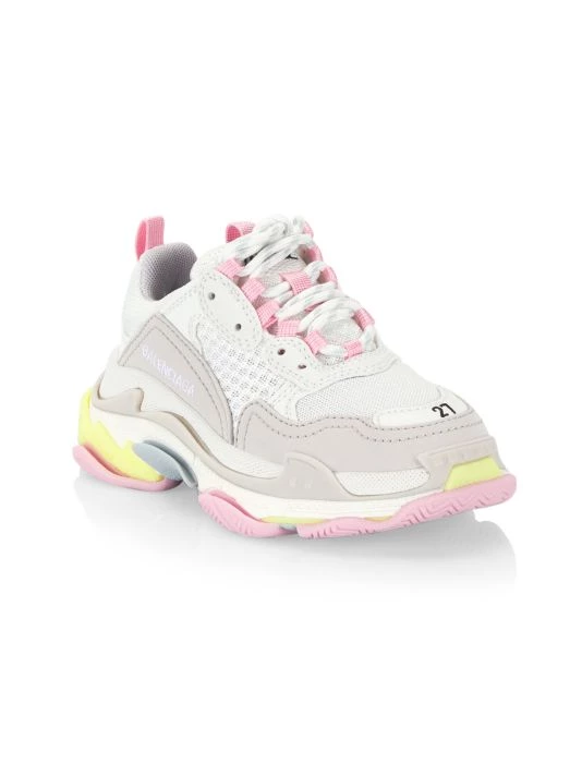 Balenciaga’s Triple S sneakers feature the brand’s embossed logo on the back and Triple S rubber branding on the tongue. These shoes fasten with lace-up vamps and are complete with chunky rubber soles.