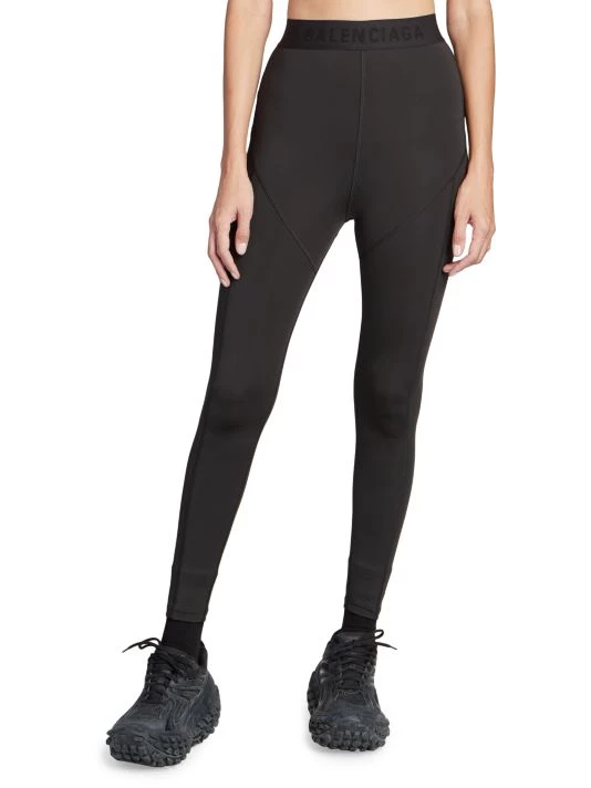 These high-rise stretch leggings boast a banded tonal logo waist.