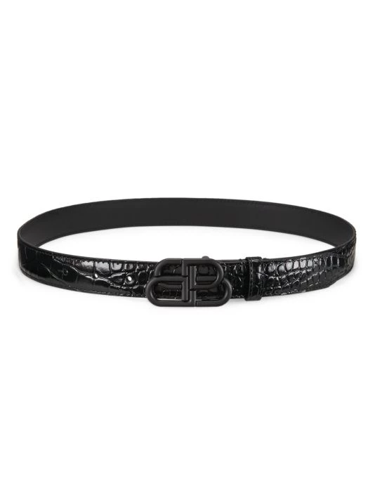 Balenciaga’s belt is styled with a tonal BB logo buckle. Made in Italy, this piece is crafted of crocodile-embossed leather with a polished finish.
