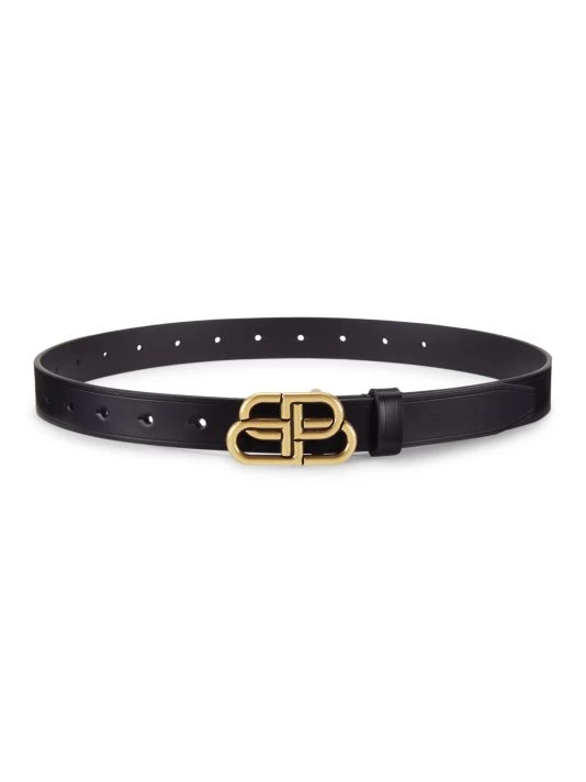 This slim leather belt is finished with Balenciaga’s signature interlocking logo buckle.