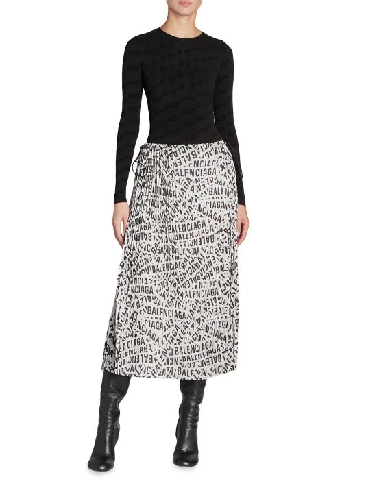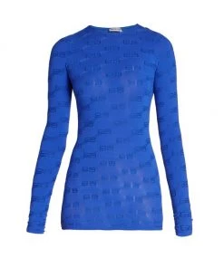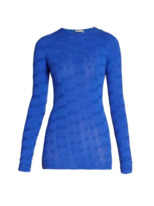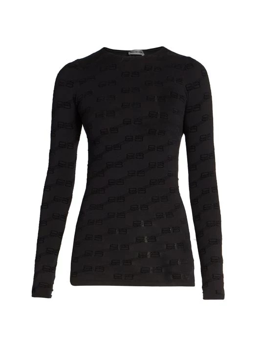 Balenciaga’s monogrammed top features a repeated BB pattern, cut with a classic crewneck and long sleeves.