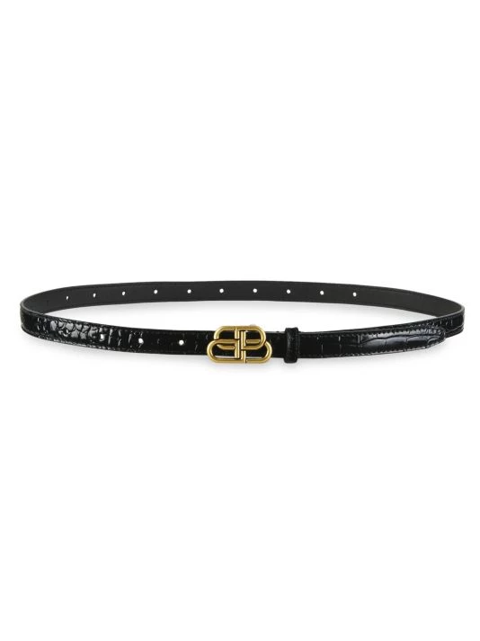 Crafted of polished crocodile embossed leather, this slim belt is highlighted with Balenciaga’s signature BB logo buckle.