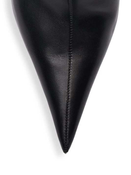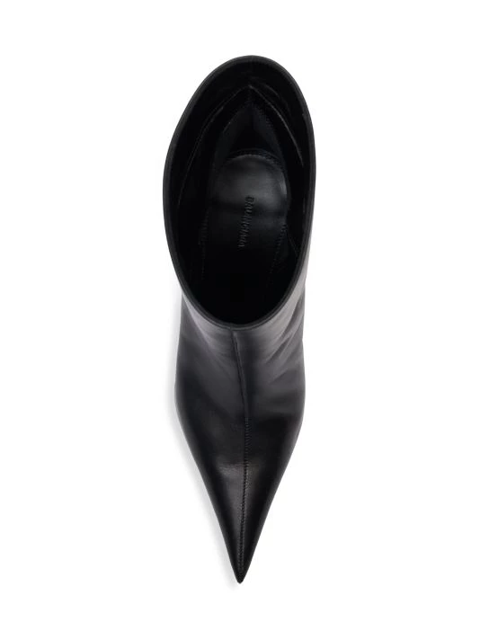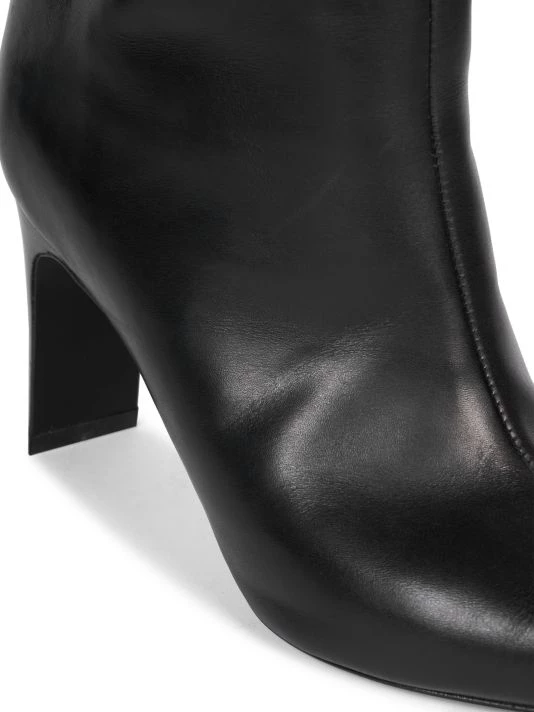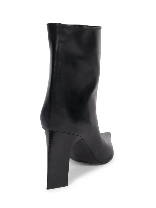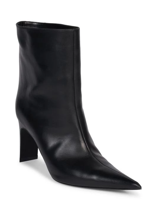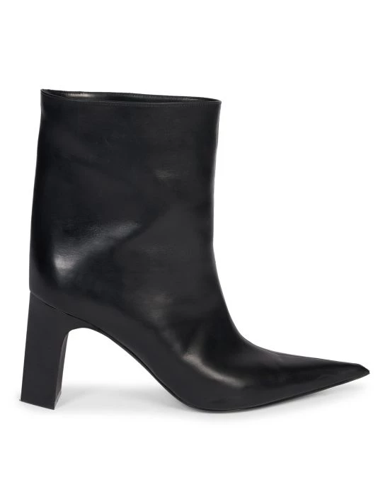 Leather booties with a defining closed, pointed toe and comfort block heel.