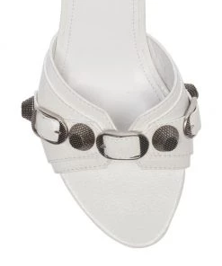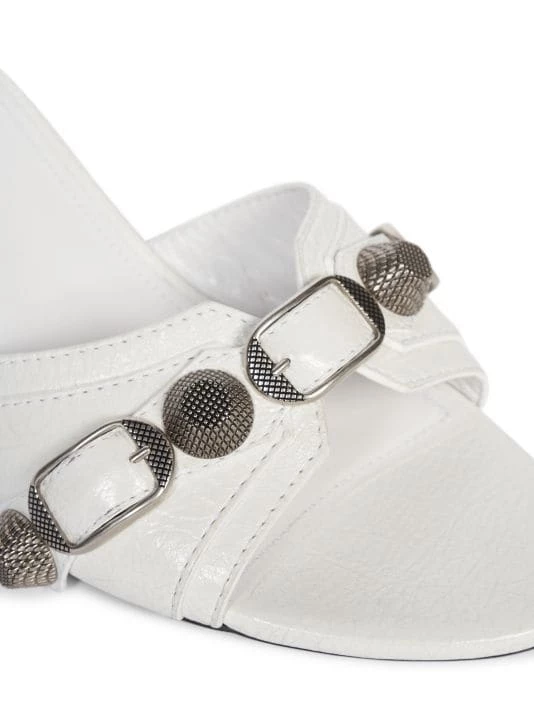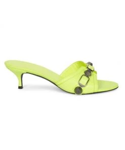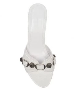 Balenciaga’s Cagole sandals are inspired by the iconic Le Cagole handbag. These leather mules are adorned with aged silvertone hardware at the vamp.