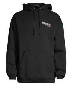 Balenciaga takes on a cyber-glam aesthetic, working lavish details like sequins and boas into baggy, oversized garments. Perfected by Creative Director Demna Gvasalia, this collection encompasses over-the-top platforms, pleated dresses, and strappy studded jeans. This bomber jacket features buttoned flap pockets and a sleek exterior made of cotton. This cotton hoodie features the brand’s campaign-style logo at the front and back.