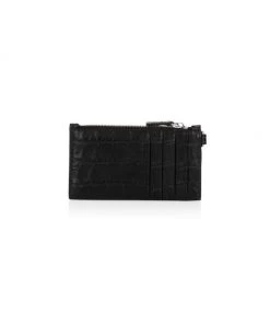 Crafted of Italian croc-embossed leather, this card case features signature logo detail across the front.