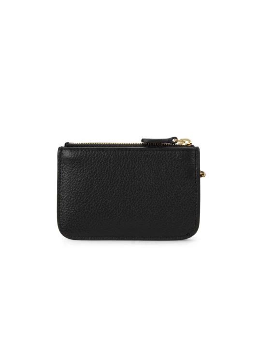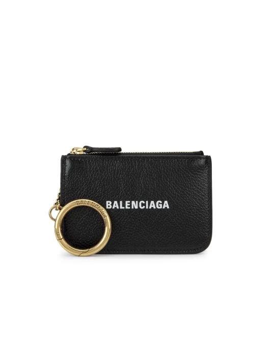 This grained calfskin coin pouch fetaures a bold Balenciaga logo and convenient key ring.