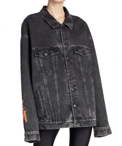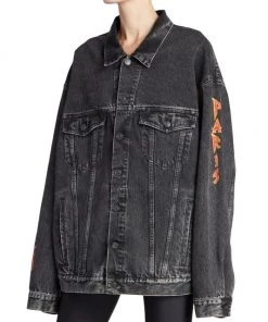 From the Cities Collection. Constructed of organic Japanese denim, this oversized jacket is complete with large contrast branding at sleeves and back.