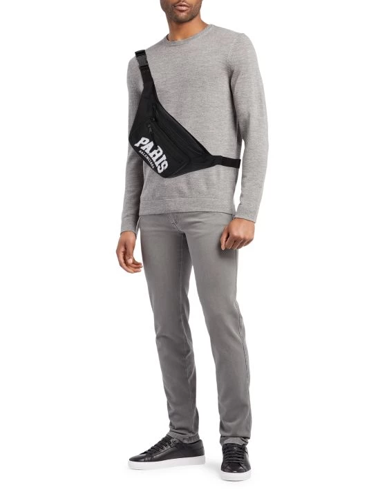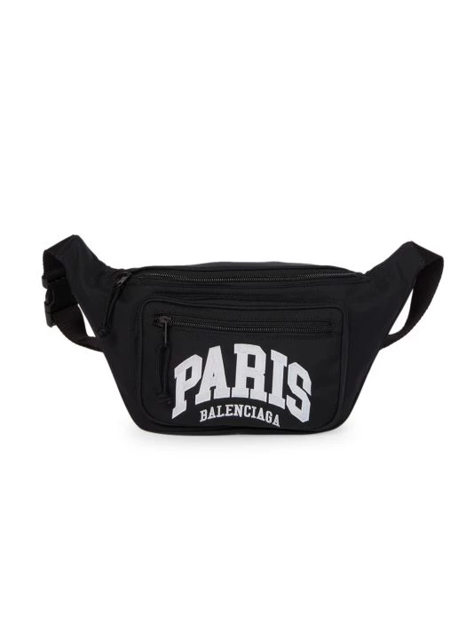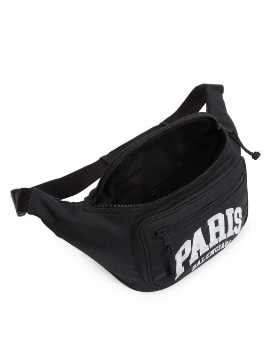 Featuring two spacious zipper compartments, this belt bag is enhanced with a Paris Balenciaga logo across the front.