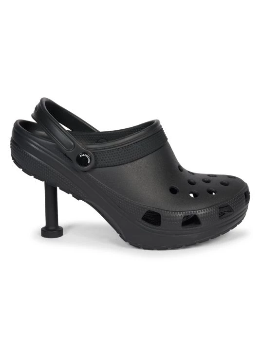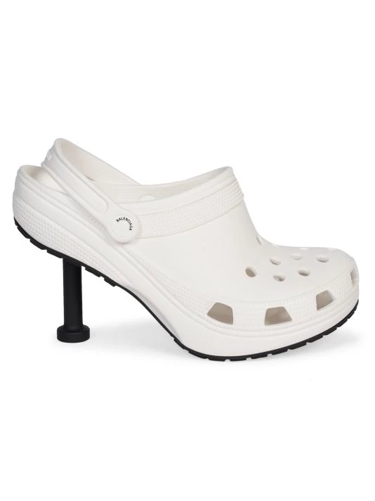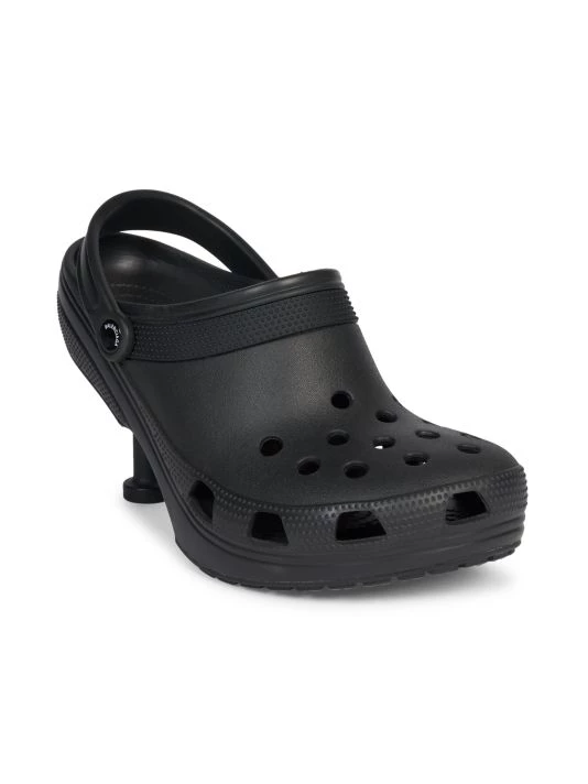 Clog-inspired heels with breathable cutouts and a micro tonal logo at side.