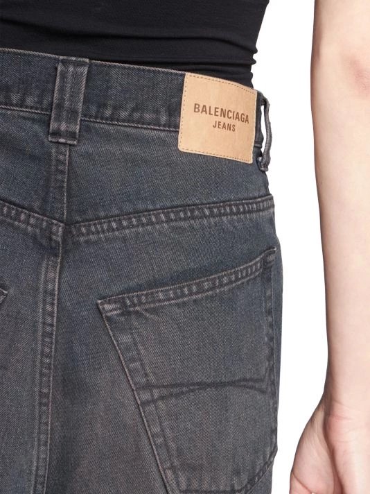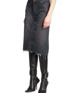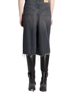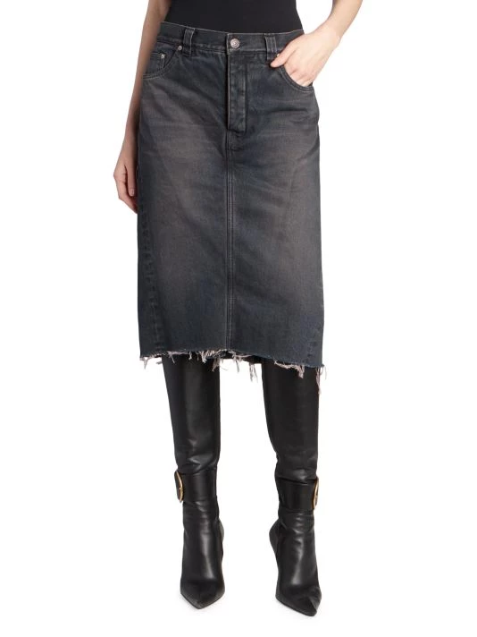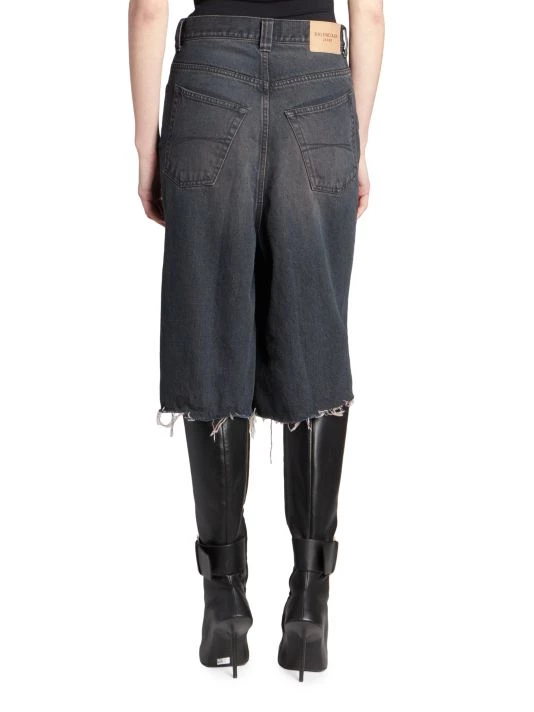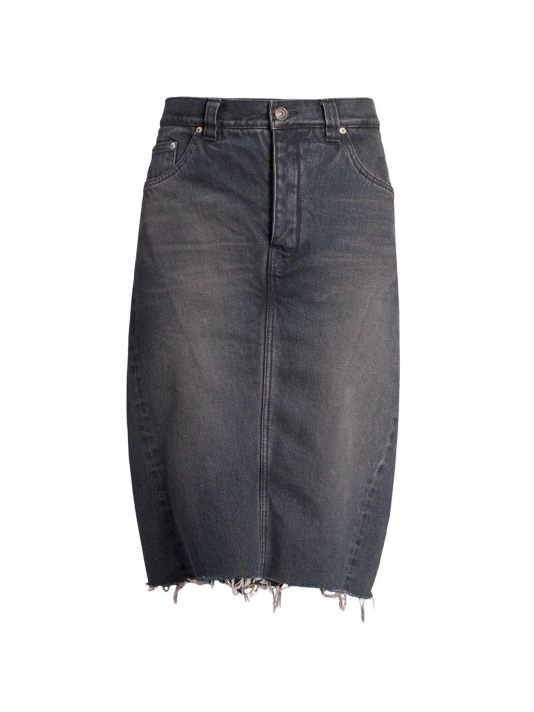 Combination denim skirt and shorts with a raw hem for a worn-in look.