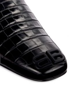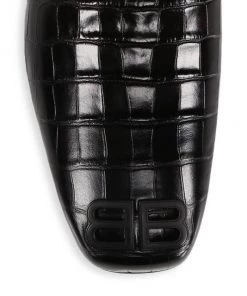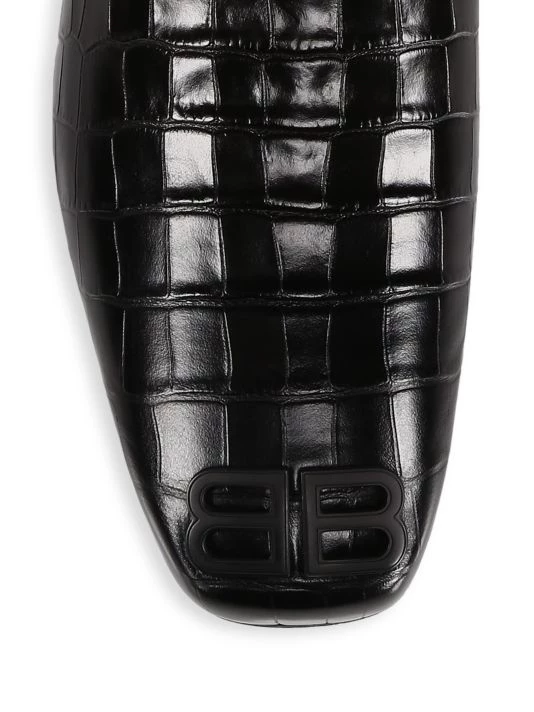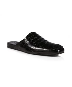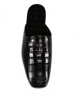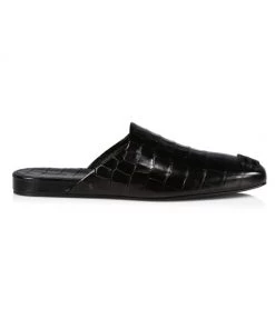 Interlocking logo hardware on croc-embossed leather define this streamlined and monochromatic mule.