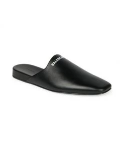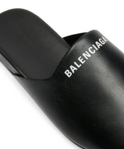 Balenciaga’s stamped logo on smooth leather define these streamlined and ultra-luxurious mules.