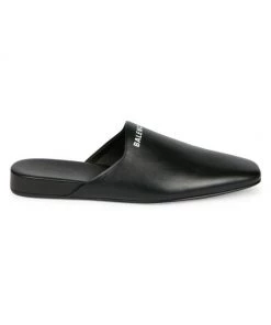 Balenciaga’s stamped logo on smooth leather define these streamlined and ultra-luxurious mules.