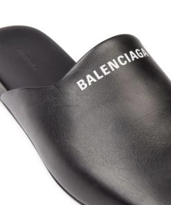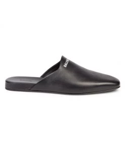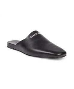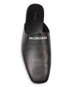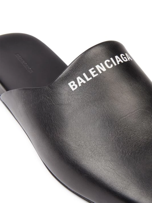 Soft leather slippers in an easy slip-on mule styling with contrast logo print.