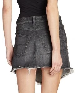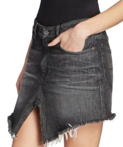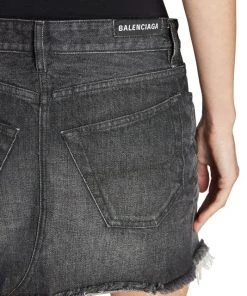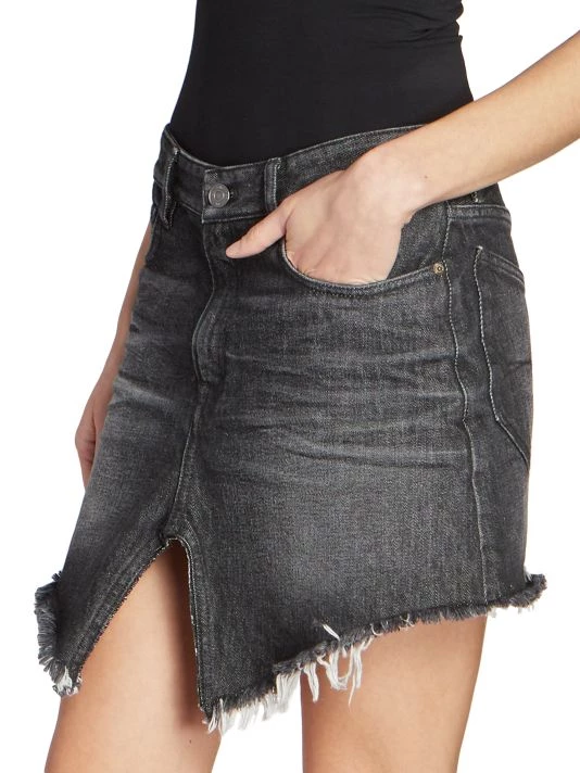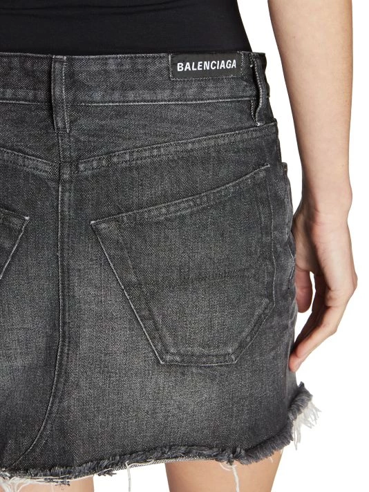 Made in Italy, Balenciaga’s denim skirt flaunts an asymmetrical hem with a cut-out. This mini piece is finished with frayed trim.