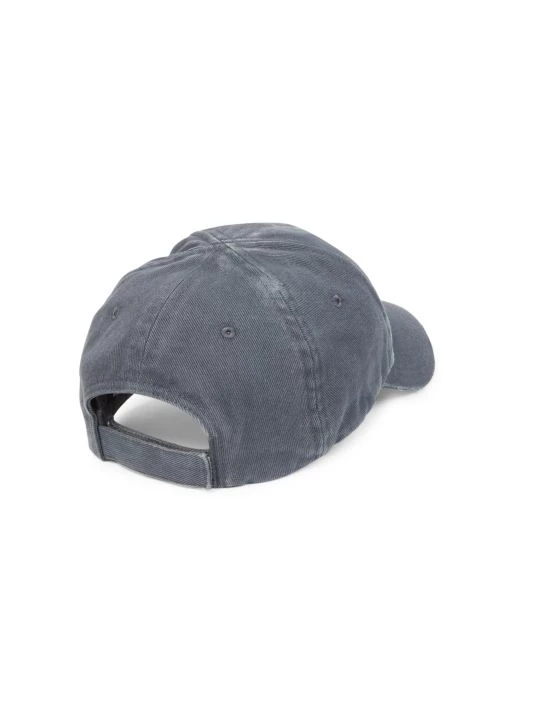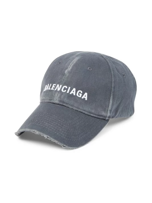 Cotton baseball cap with distressed accents and an embroidered logo across the front.