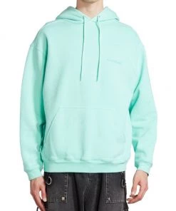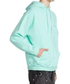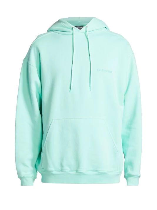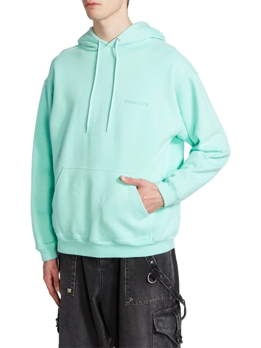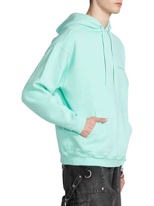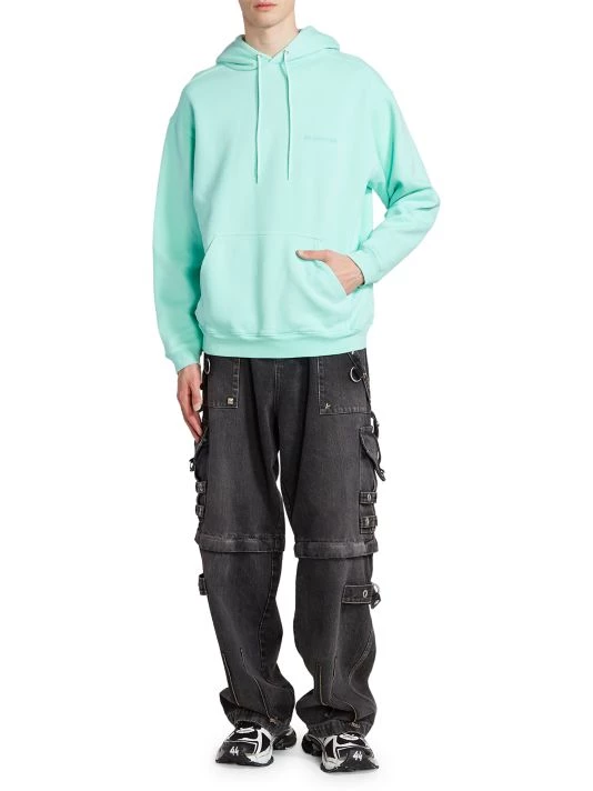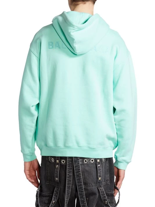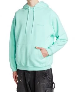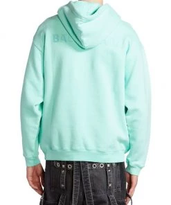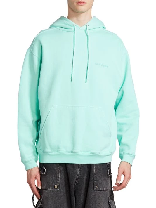 Balenciaga takes on a cyber-glam aesthetic, working lavish details like sequins and boas into baggy, oversized garments. Perfected by Creative Director Demna Gvasalia, this collection encompasses over-the-top platforms, pleated dresses, and strappy studded jeans. This classic sweatshirt sports a drawstring hood and features the brand’s logo on the chest.