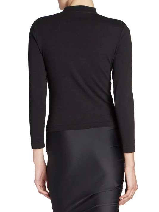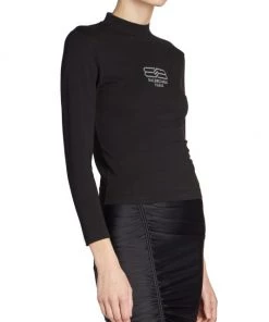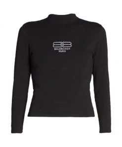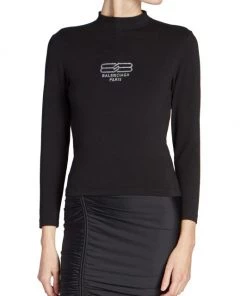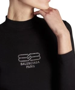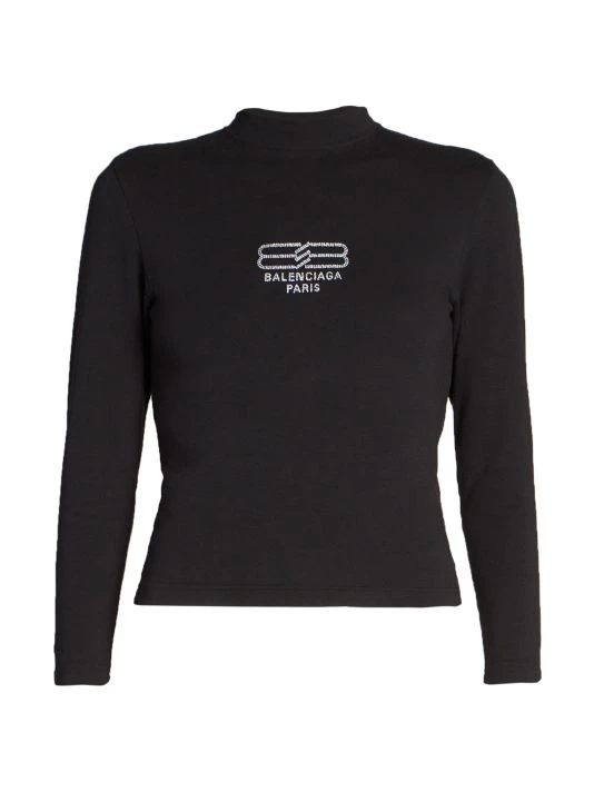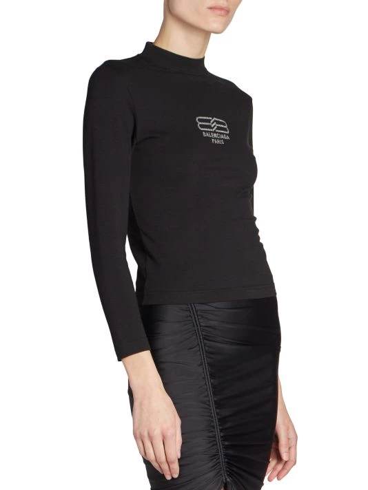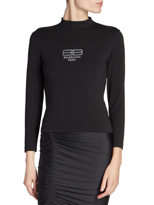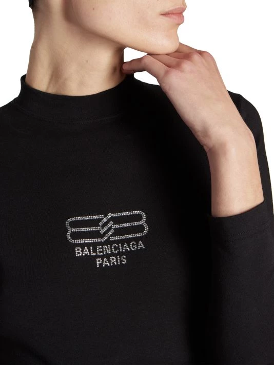 Balenciaga’s fitted shirt features the signature BB logo adorned with sparkling crystals.