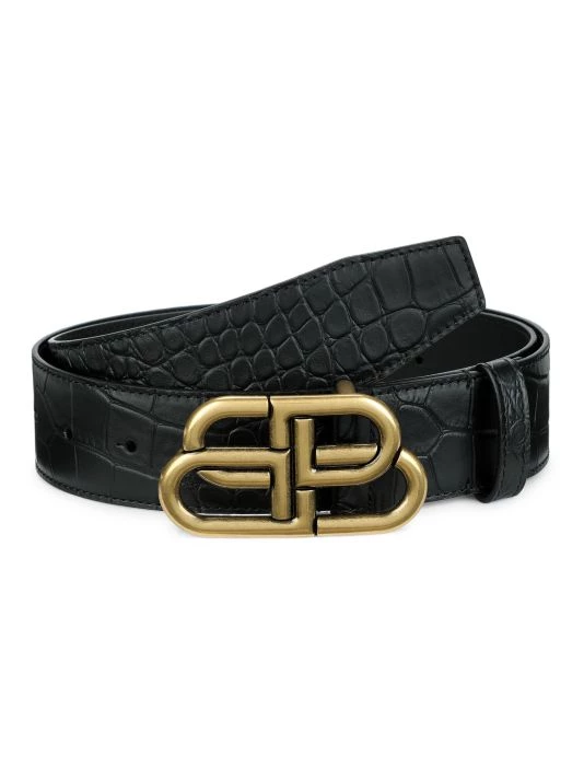Crafted of croc-embossed leather, this Balenciaga belt features an extra-large interlocking logo buckle.