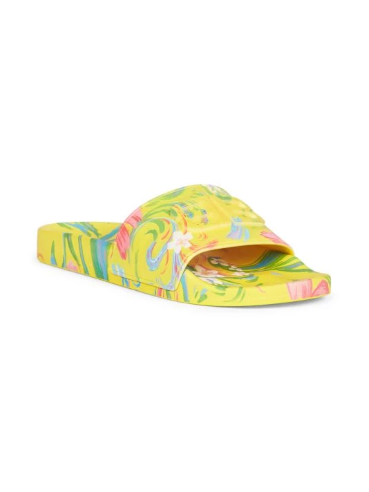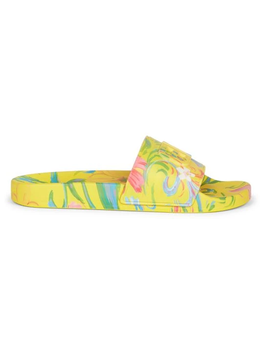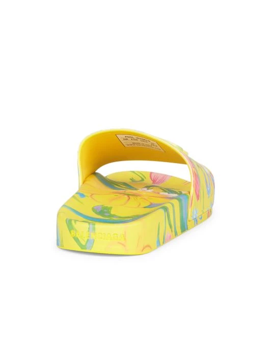 These pool slides from Balenciaga are adorned with a floral print and an embossed BB logo at the vamp.