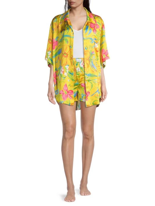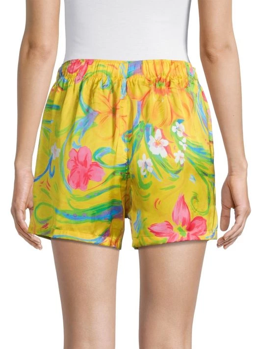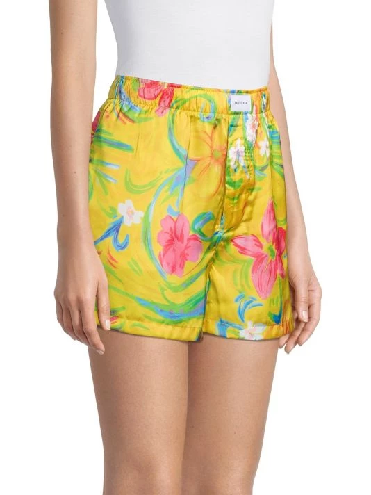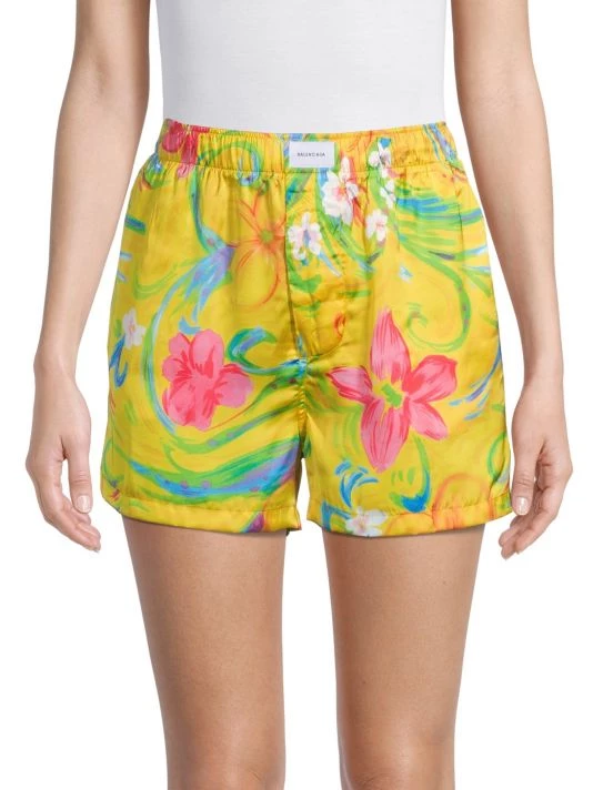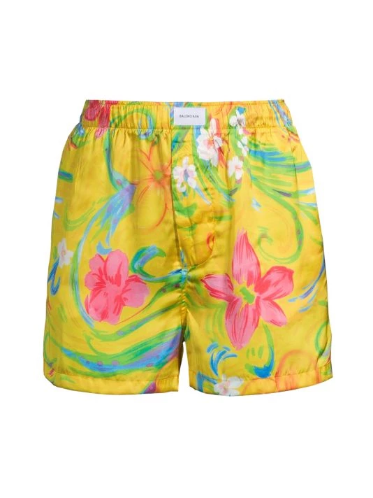 These Balenciaga boxer shorts are crafted of bright floral satin. An easy pull-on waistband with a logo patch completes this sporty style.