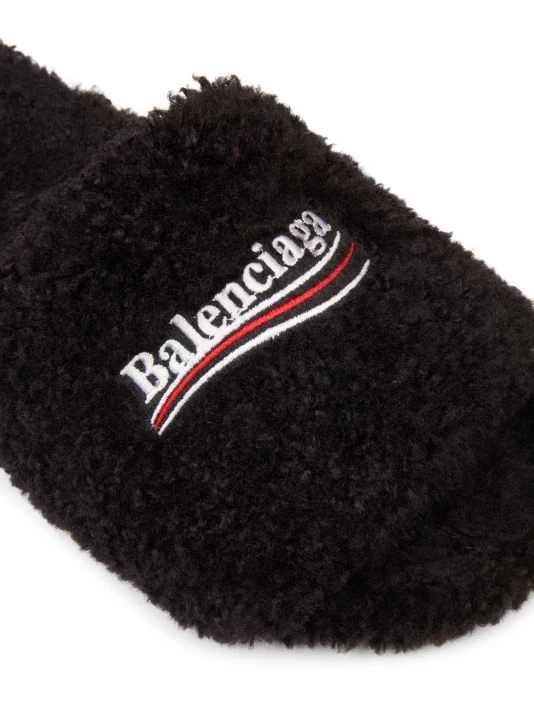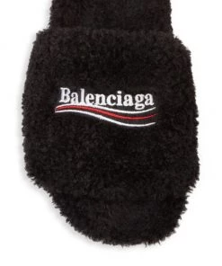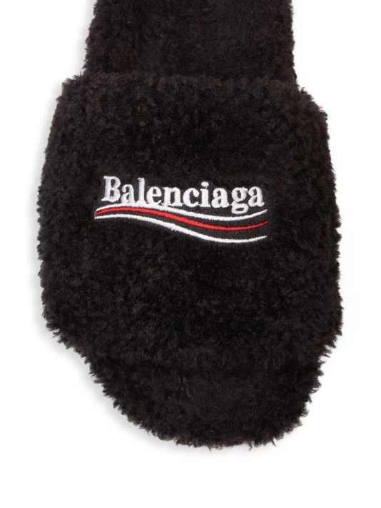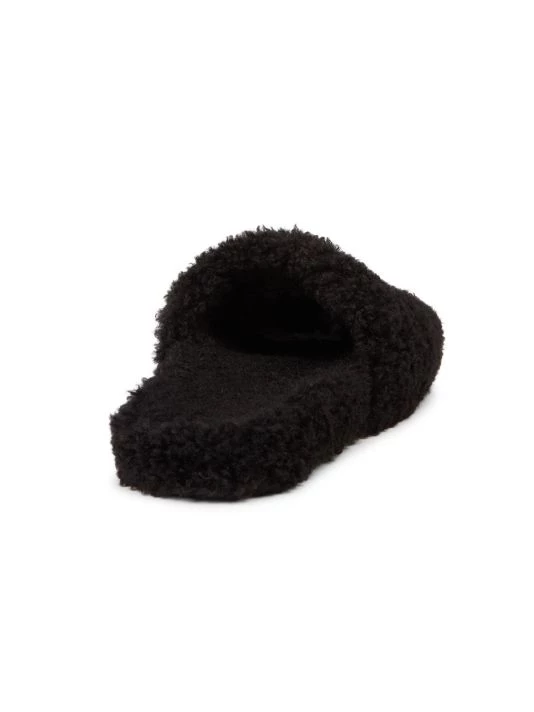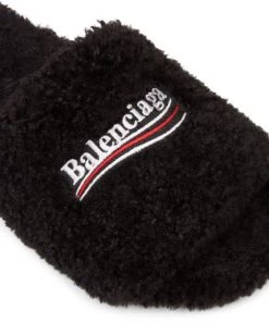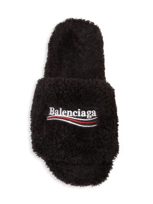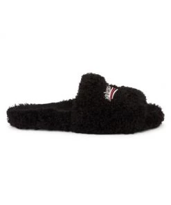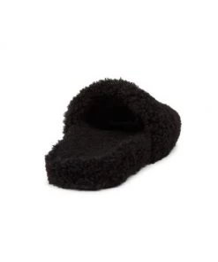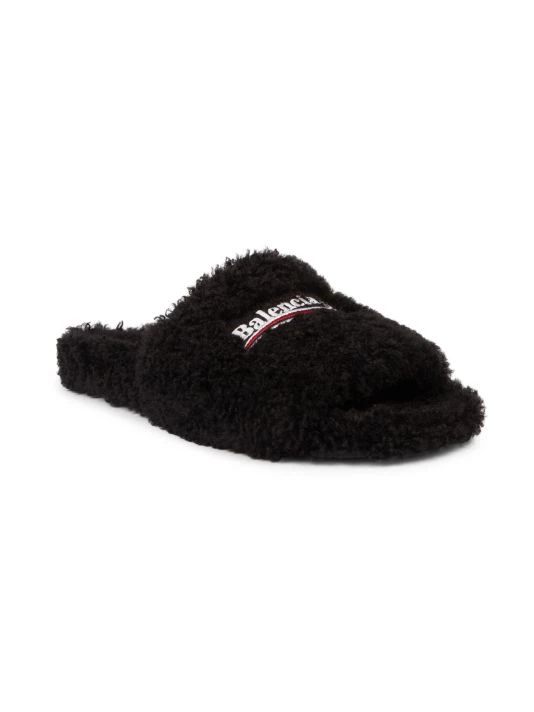 Cozy slides with logo get a plush update with a full faux fur finish.