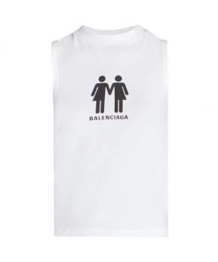 Crafted of soft cotton, Balenciaga’s sleeveless tank top is decorated with a graphic motif and the signature logo.
