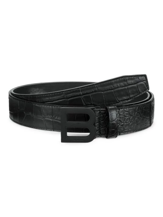 Crafted of croc-embossed leather, this Balenciaga belt features a matte logo buckle.