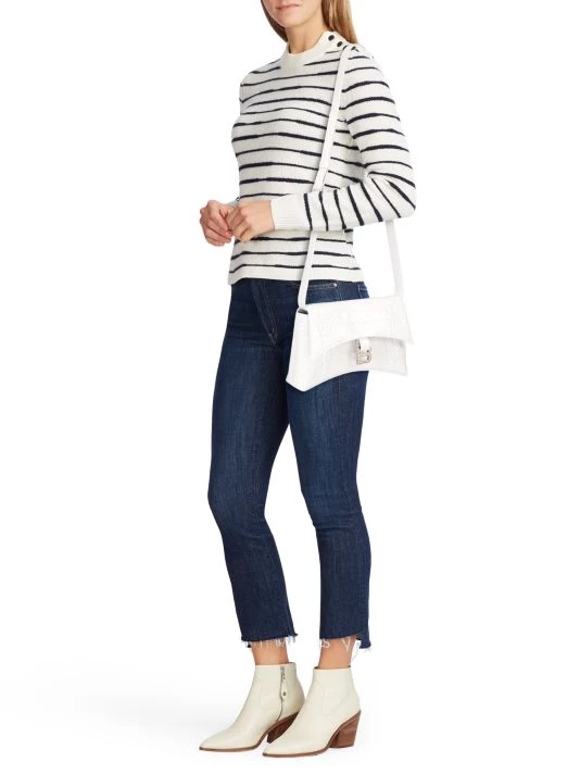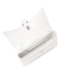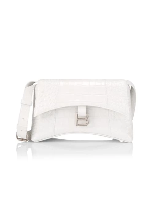 Slim crocodile-embossed leather shoulder bag in signature sculptural silhouette, detailed with tonal Balenciaga logo plaque.