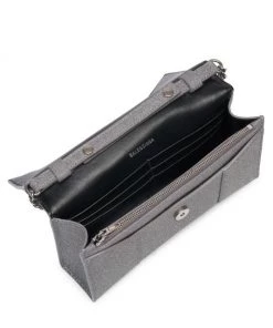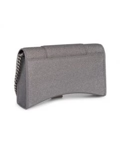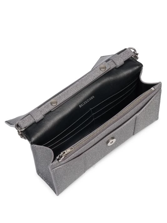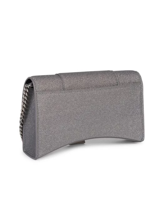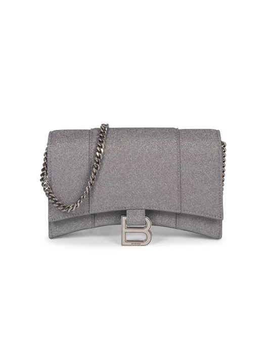 From the Hourglass collection. This wallet is crafted from denim printed nappa leather and features a chain shoulder strap and ‘B’ logo plaque.
