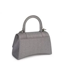 From the Hourglass collection. Crafted in Italy of an allover glitter fabrication, this top handle bag boasts a ‘B’ logo plaque.