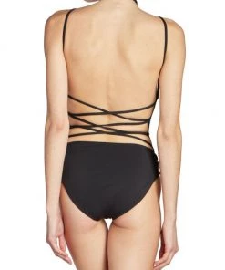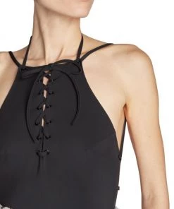 Made in Italy, Balenciaga’s one-piece swimsuit features flattering lace-up detailing.
