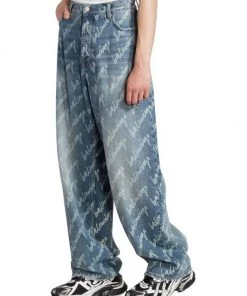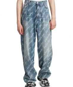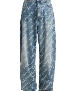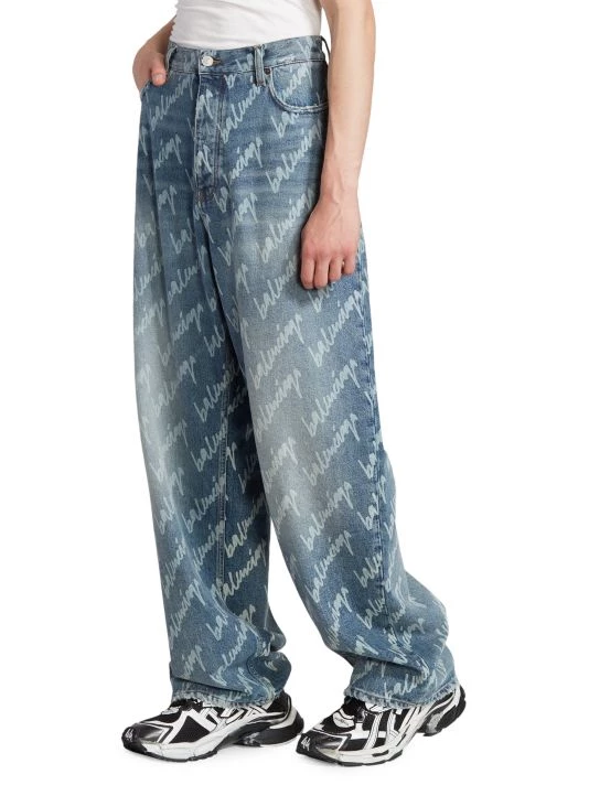 These wide-leg pants are cut for an oversized fit and feature an all-over Balenciaga script logo print.