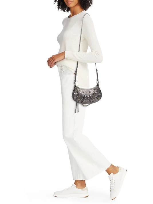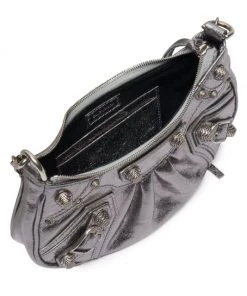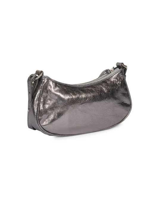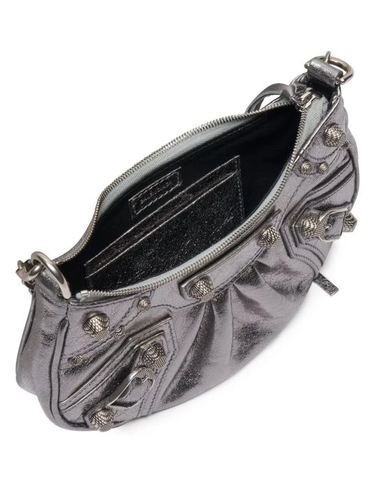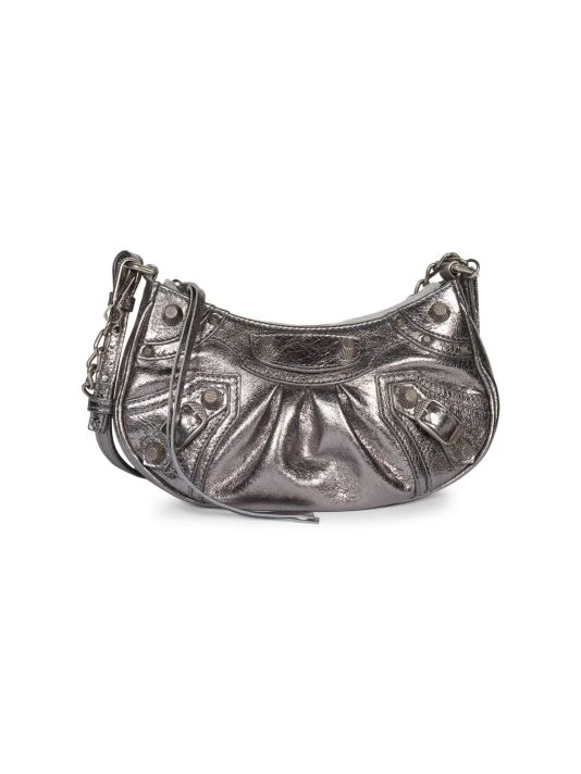 Balenciaga’s Le Cagole bag is crafted of flashy metallic leather. This shoulder bag features buckle details in aged silvertone hardware.