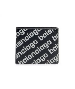 This leather Balenciaga wallet features a repeating contrast logo print.