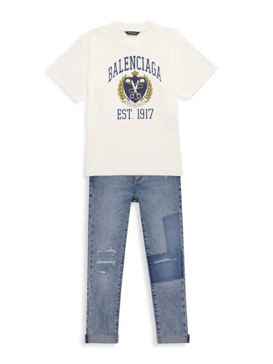A classic-style T-shirt with a collegiate-style logo on the front.