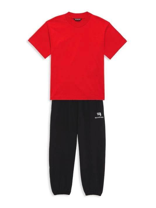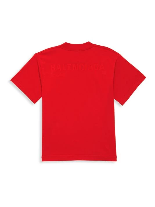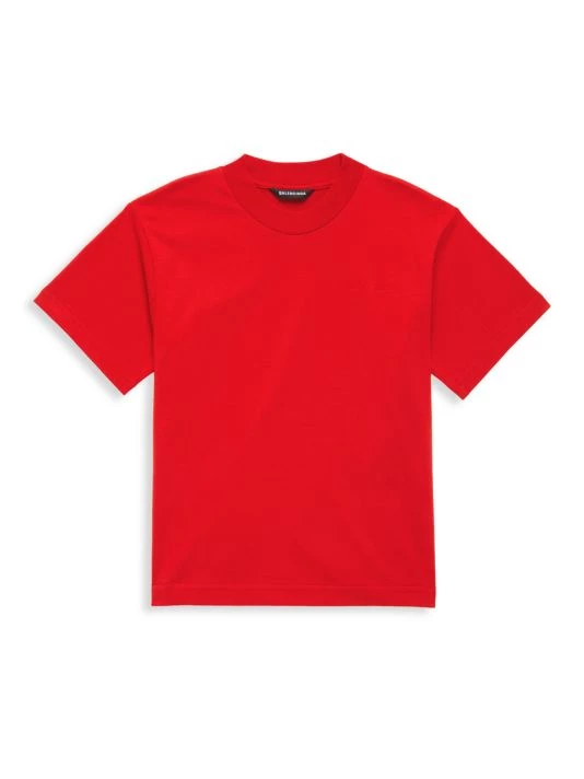 The classic-style T-shirt features a ribbed crewneck and short sleeves.