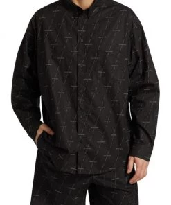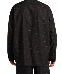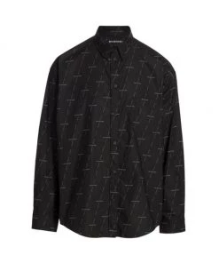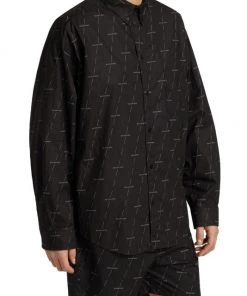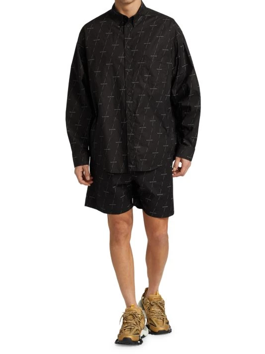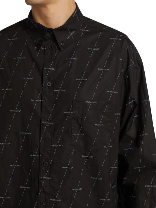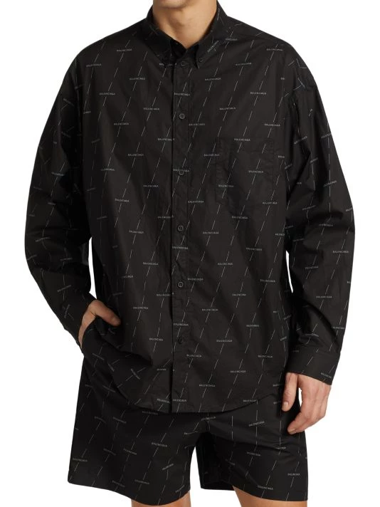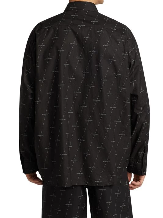 A crisp cotton construction and an allover logo motif adds a modern touch to this oversized button-down shirt.