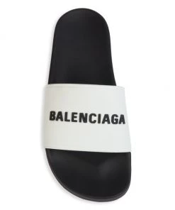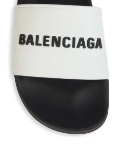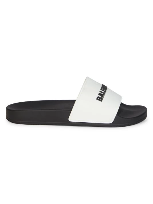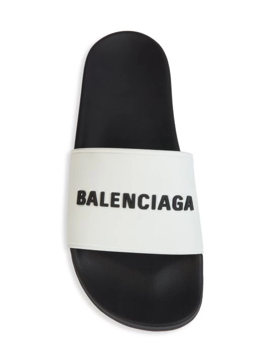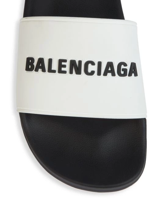 The signature logo moniker is embossed on these contrast pool slides.