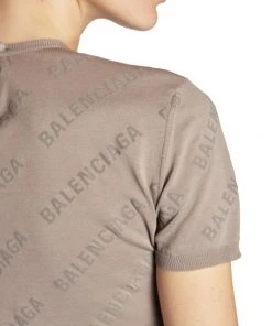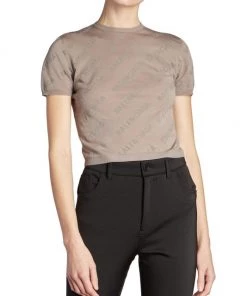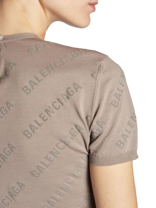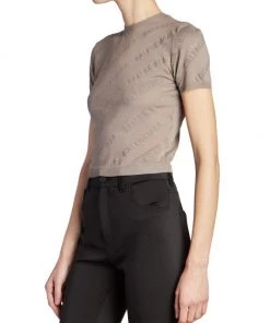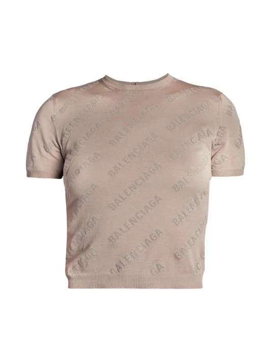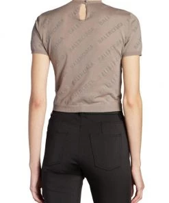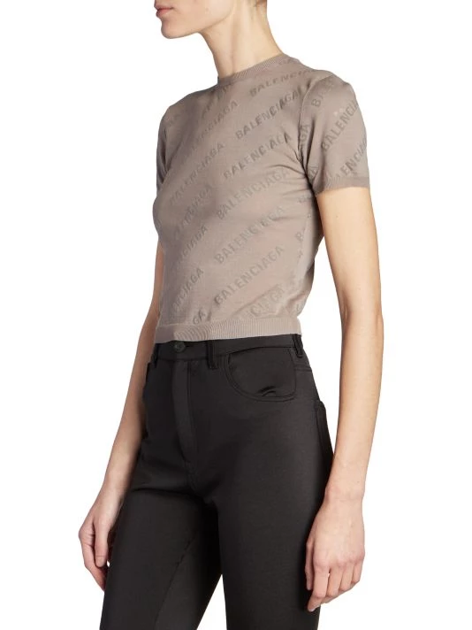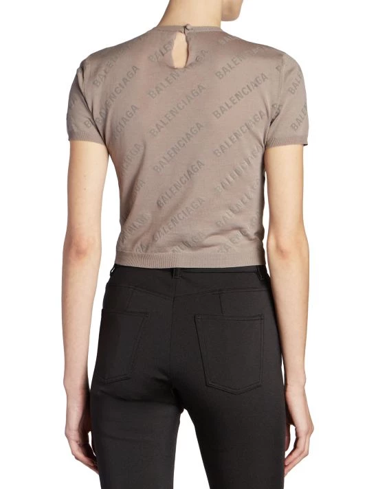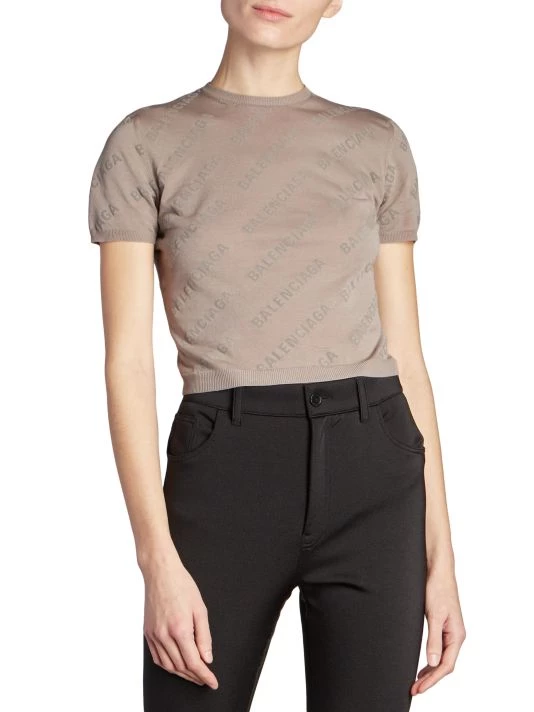 Showcasing a logo print, Balenciaga’s cotton cropped sweater is styled with a crewneck and short sleeves.