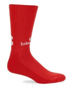 Soft cotton stretch athletic socks topped with intarsia knit logo and soccer motif.
