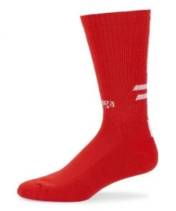 Soft cotton stretch athletic socks topped with intarsia knit logo and soccer motif.