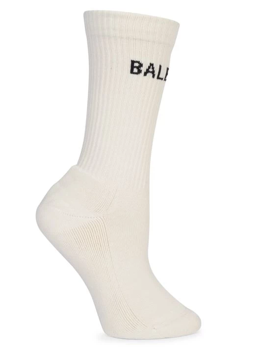 These cotton blend socks feature a ribbed upper with a logo detail.