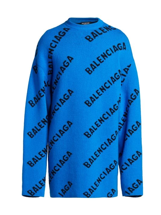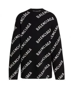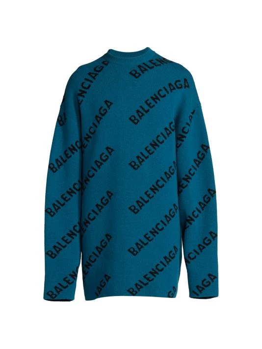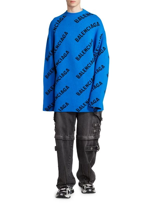 Balenciaga takes on a cyber-glam aesthetic, working lavish details like sequins and boas into baggy, oversized garments. Perfected by Creative Director Demna Gvasalia, this collection encompasses over-the-top platforms, pleated dresses, and strappy studded jeans. This bomber jacket features buttoned flap pockets and a sleek exterior made of cotton. This virgin wool-blend sweater boasts the brand’s iconic logo in a diagonal pattern.